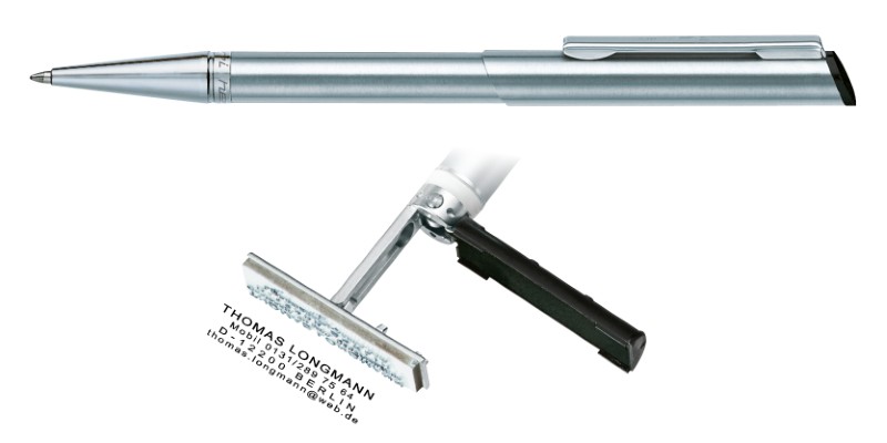 Propisovací tužka HERI Diagonal s vestavěným razítkem až pro 4 řádky textu.